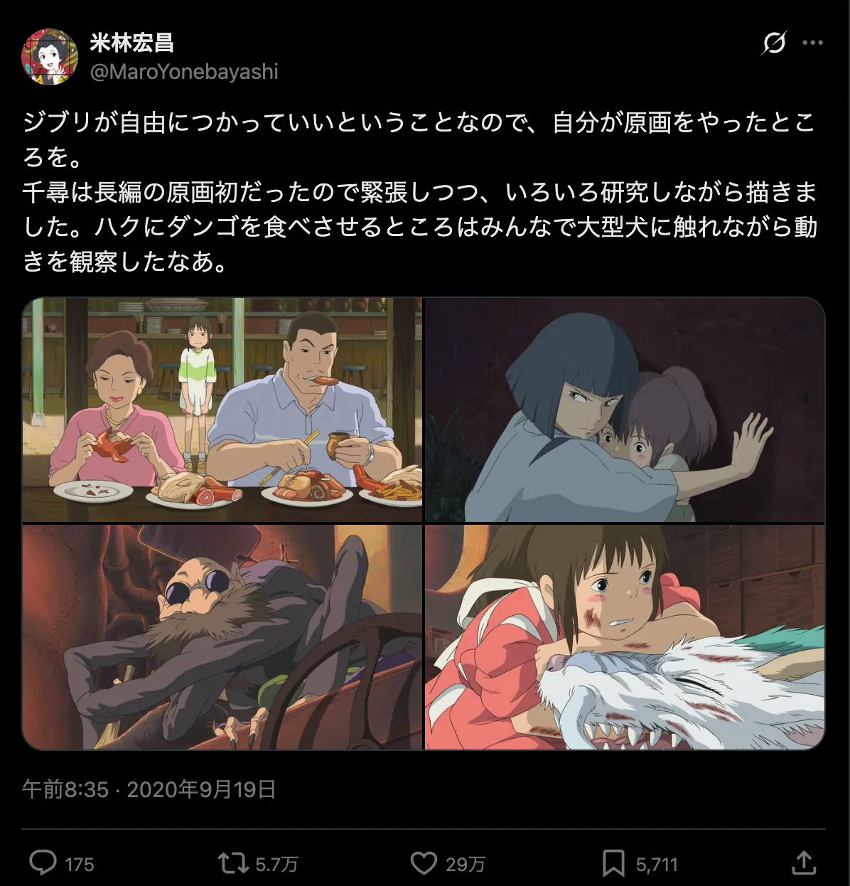 <米林宏昌さんのX(@MaroYonebayashi)より>