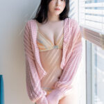 肌に寄り添うピンクの編み目が、マシュマロボディのやさしい質感を際立たせ、ふとした仕草さえも愛らしく映す。