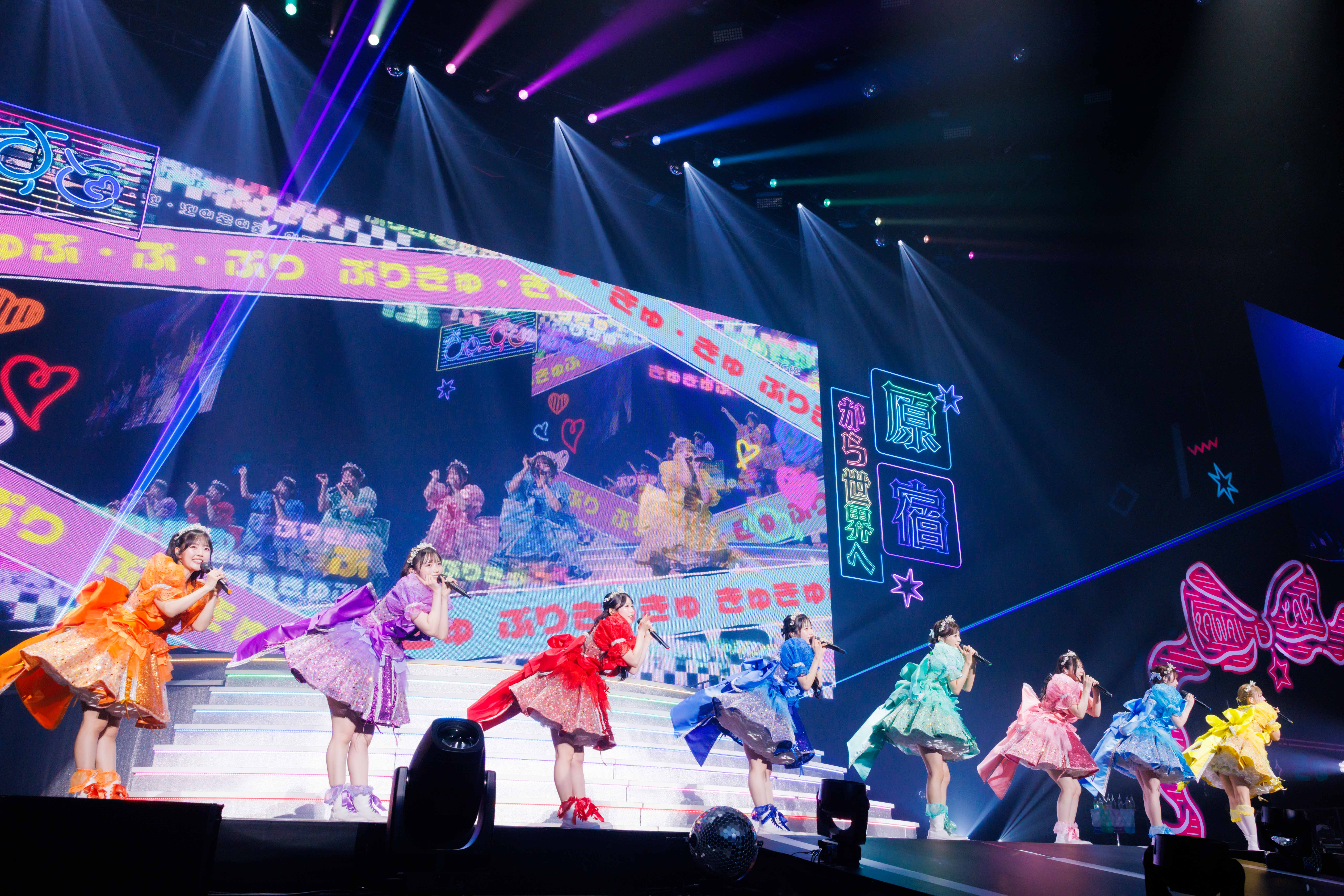 MCで大きなリボンが特徴的な衣装を紹介すると、真鍋凪咲から新曲「ぷりきゅきゅ」初披露が伝えられ、会場のボルテージが上がる。「ぷりきゅきゅ」は、CUTIE STREETらしいコミカルでポップなメロディが次々と転調していき、まるでミュージカルを見ているかのような楽曲。新曲にも関わらず大きな盛り上がりを見せ、その勢いのまま、「モアベリサマー」そして、「みんな本当にこのステージに連れてきてくれてありがとう!」と、川本がファンに大きな声で感謝を伝えながら「ハッピー世界!」が始まる。怒涛の3曲に、メンバー、そしてきゅーてすとの笑顔がこぼれ、会場中が多幸感に包まれたようだった。