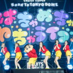そして、すぐさま客席からアンコールの声が響き渡る。4日(土)の公演では、それに応えるようにメンバーたちが現れたと思いきや、なんと『クレヨンしんちゃん』の主人公・野原しんのすけのトレードマークである赤色のTシャツと黄色の短パンスタイルで登場。さらに、しんちゃんも一緒に登場する“はちゃめちゃわちゃ”なサプライズが待っていた。しんちゃんとFRUTIS ZIPPERの奇跡のコラボで「はちゃめちゃわちゃライフ!」を再披露。このコラボに真中は「ちっちゃい時から毎週のように会っていた(見ていた)しんちゃんがこうやって隣にいるのが信じられない!」と喜びを語った。