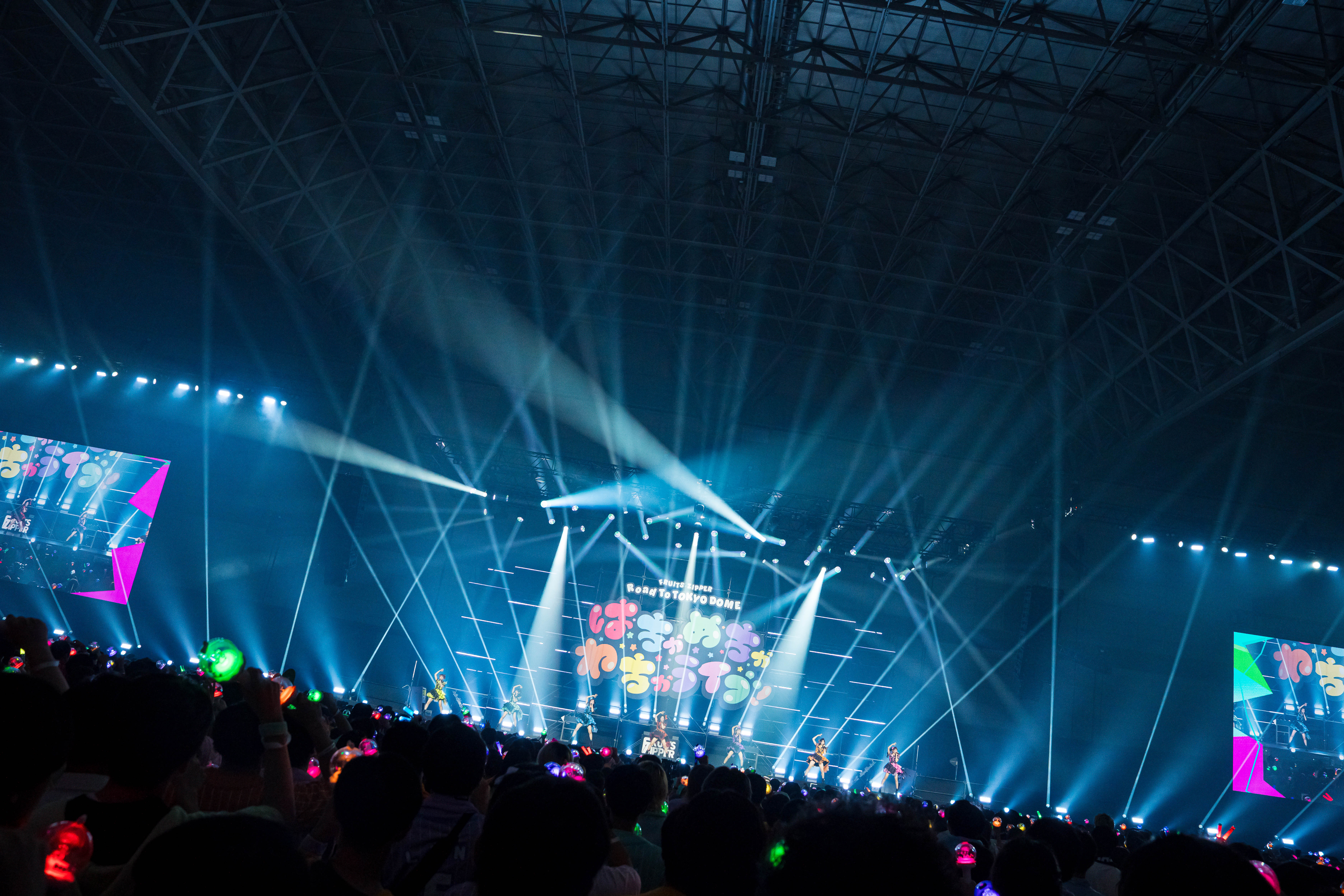 7人組アイドルグループ・FRUITS ZIPPERによるライブ『FRUITS ZIPPER Road To TOKYO DOME ~はちゃめちゃわちゃライブ!~』が10月4日(土)、5日(日)の2日間、千葉県・幕張メッセ 国際展示場 ホール8にて行われた。