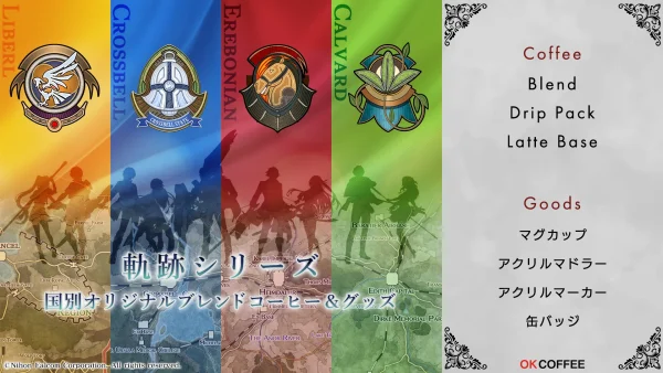 人気RPG『英雄伝説 軌跡シリーズ』のコラボコーヒーとアイテムが、OK COFFEEから発売される。