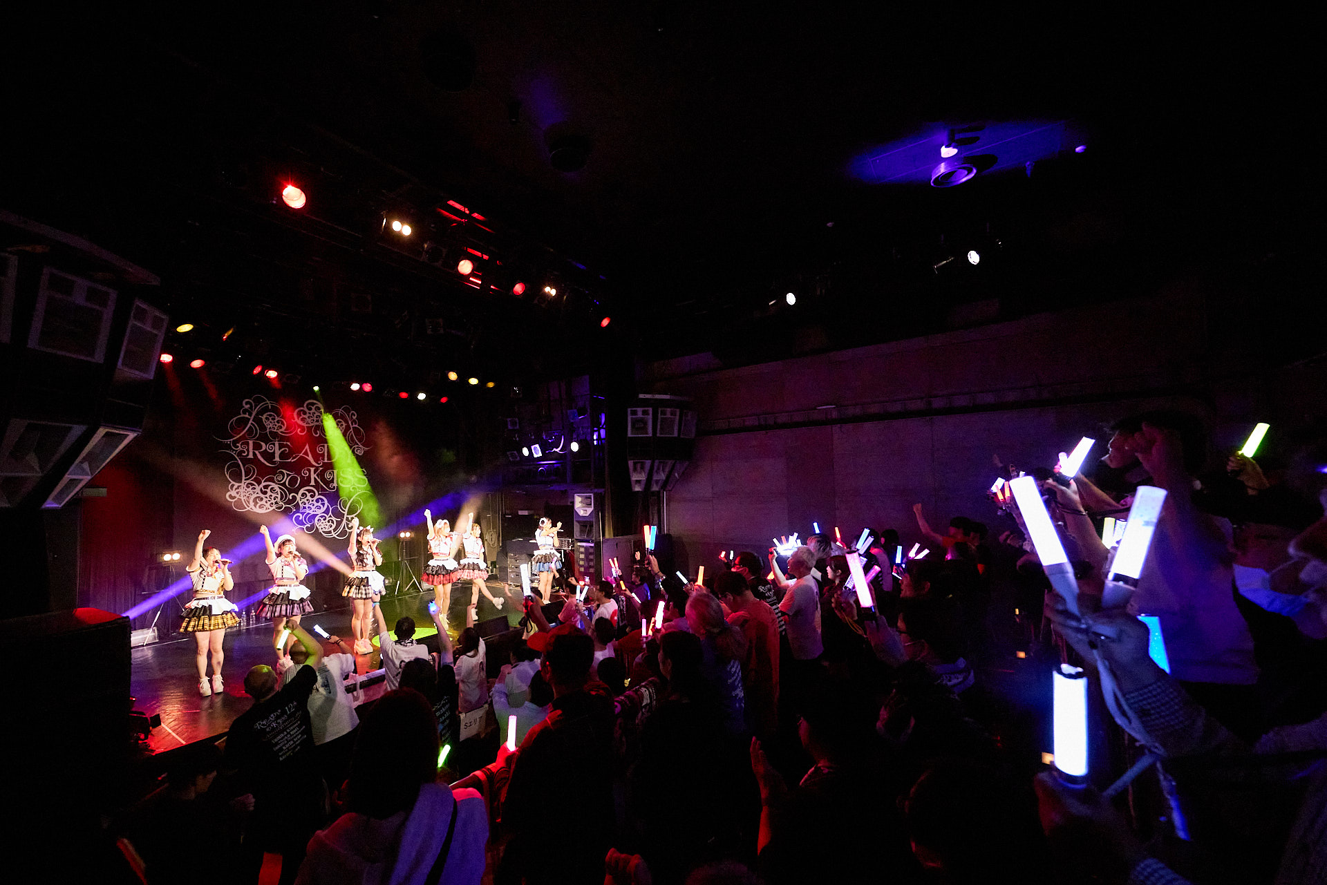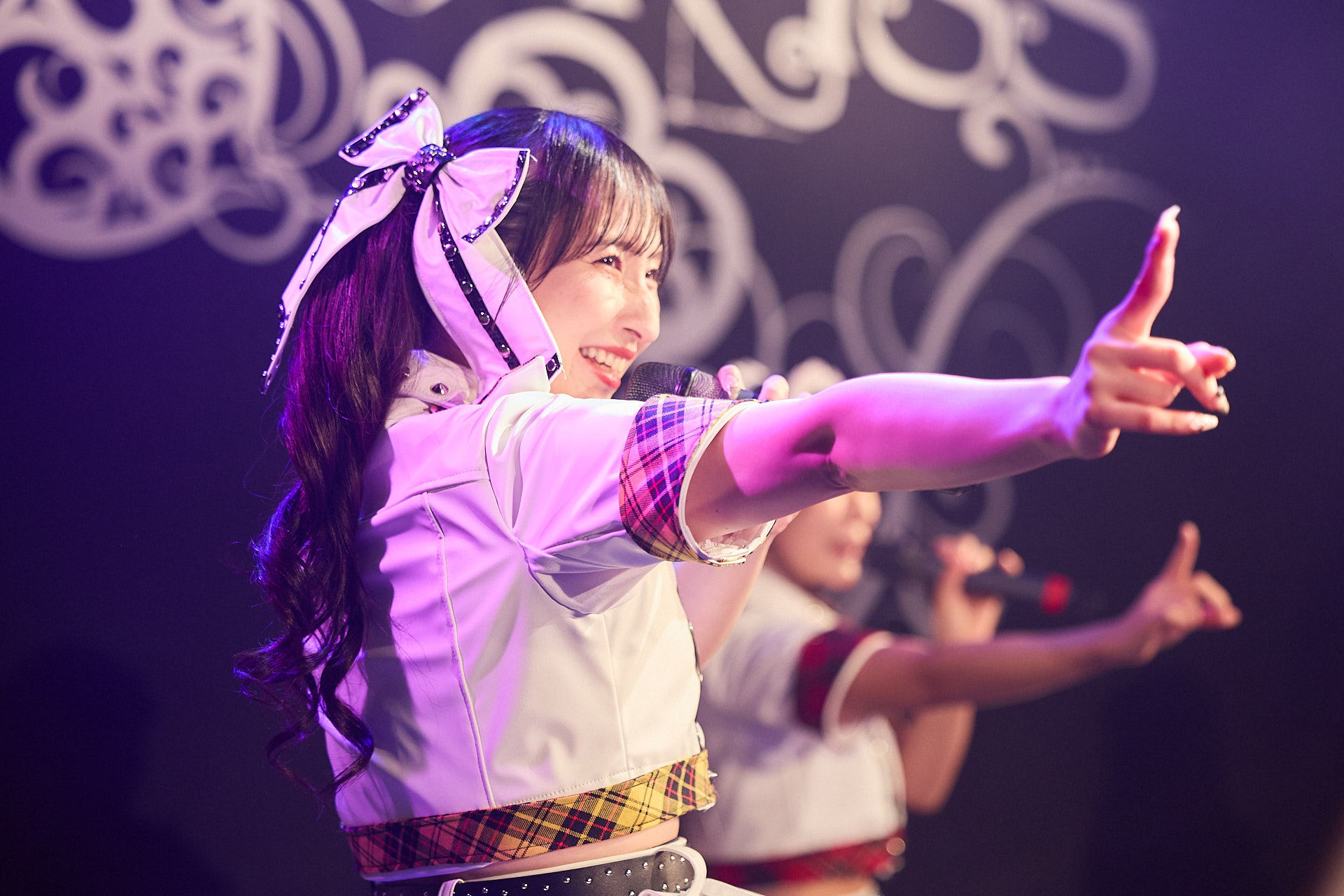 「きゅんきゅんする」と言いたくなるくらい、わちゃわちゃと弾けたポップチューンの『限界DRIP』で見せた、キュートなアイドルらしさを思いきり楽しむメンバーらの姿。フロアでも、彼女たちと一緒に心を乙女モードに染め上げてはしゃぐ人たちも多かった?!鳴り響くサイレンの音。そこへ絡むのが様式美系のハードロックナンバー。『サイレンとジェラシー』も、石谷光らしい遊び心を詰め込んだハード&ポップチューン。この曲のサビ歌が胸を熱く掻きむしる。楽曲の表情にあわせた、メンバーたちのパワフルでダイナミックで少し強気な歌声やパフォーマンスが頭の中で鳴りやまない。一転、別れをテーマにしたミドルメロウな『永遠に』では、 一人一人が切ない想いに心を染め上げ、「永遠にあなたの側で笑っていたかった」と、少し哀愁を帯びた歌声を、場内にいる一人一人の心に響かせていた。