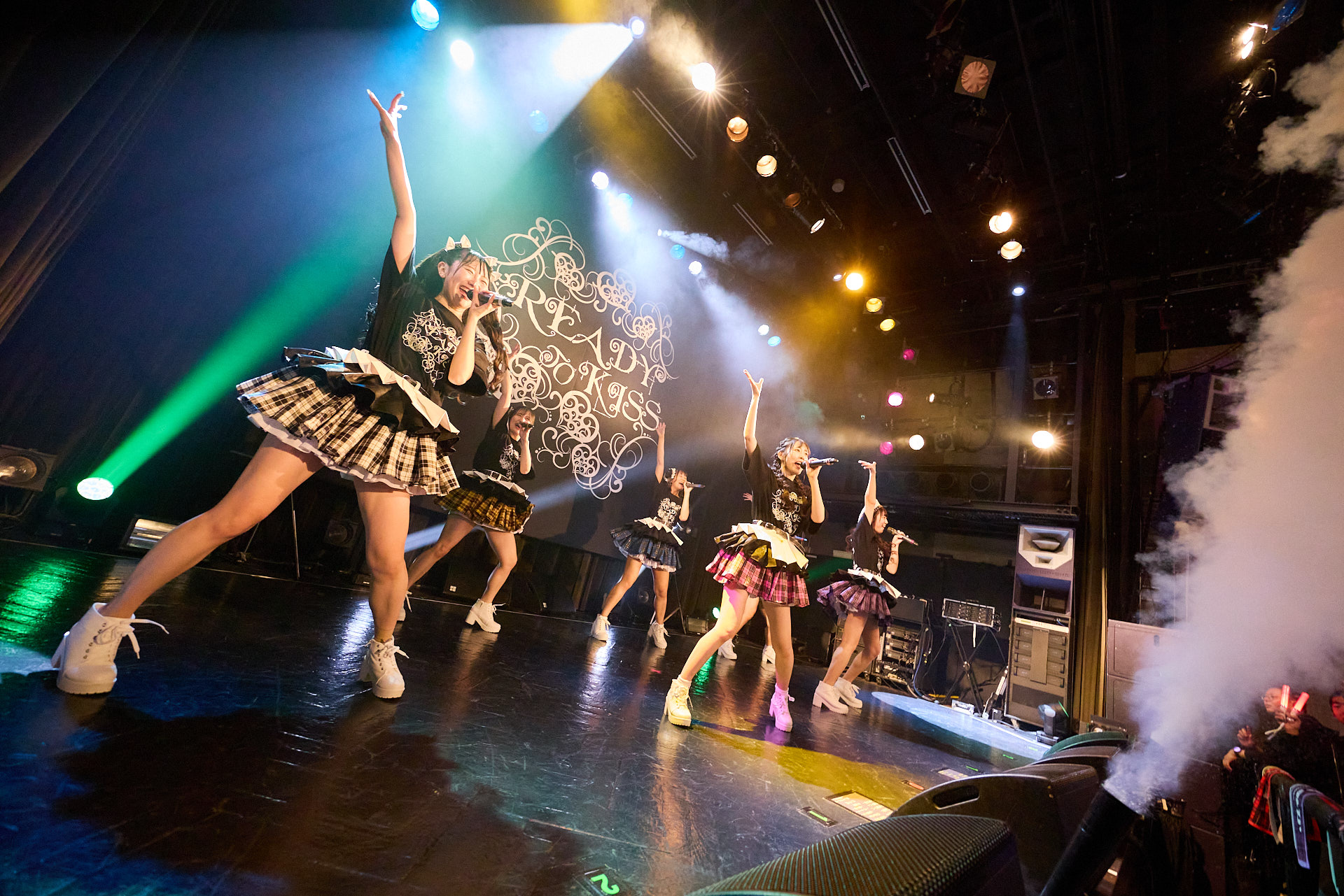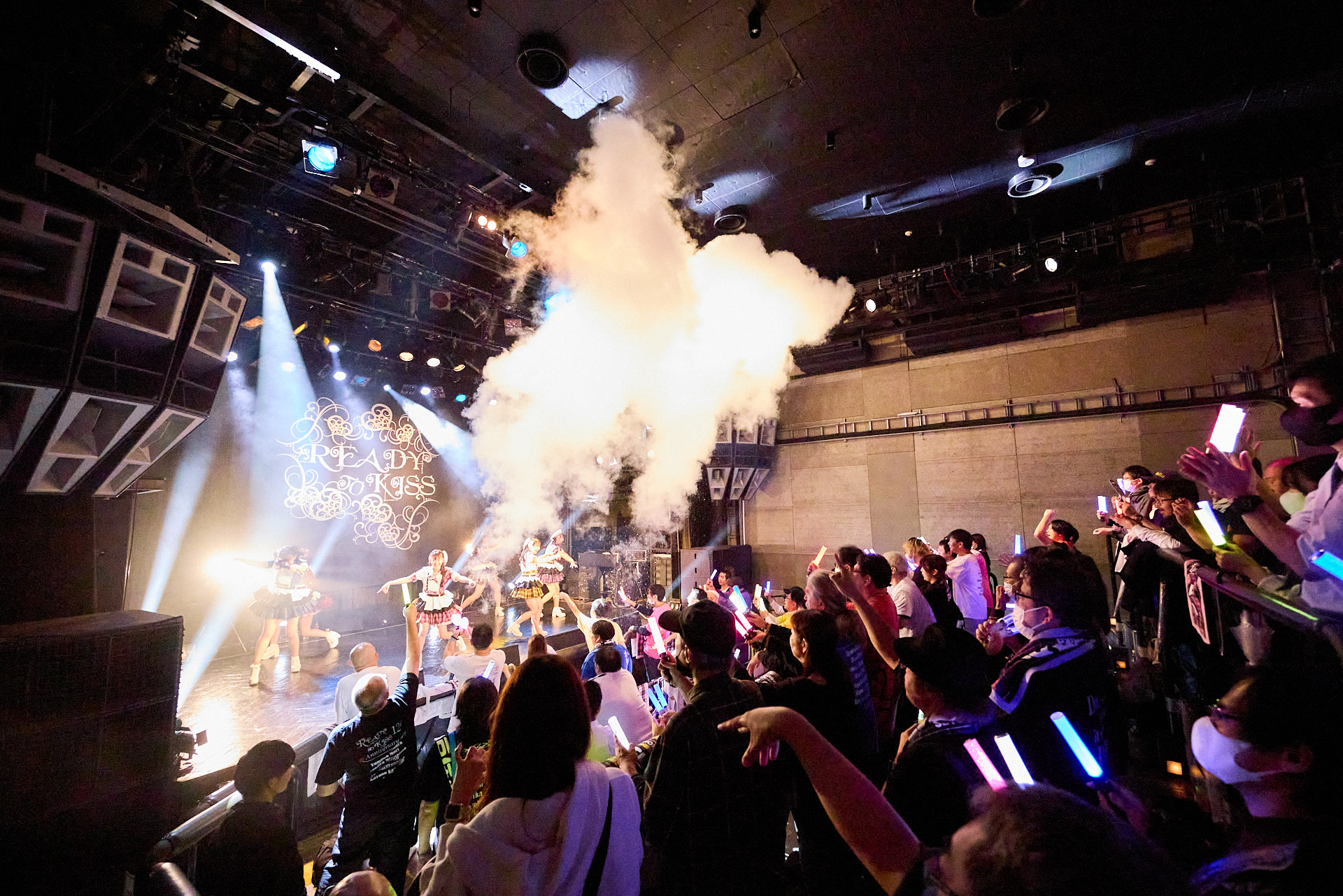 READY TO KISSには、駄洒落風のタイトルにした曲も一時期多かった。『成増になります』も、そう。なりたい自分になりますという気持ちを、言葉遊びをしながら巧みに伝えていく。その洒落た遊び心に、初期曲以外のすべてを手がけているサウンド・プロデューサー石谷光のセンスの良さを覚える。この曲でも、ステージの上で無邪気にはしゃぐ6人と一緒に、フロア中の人たちも、声を張り上げながらはしゃいでいた。