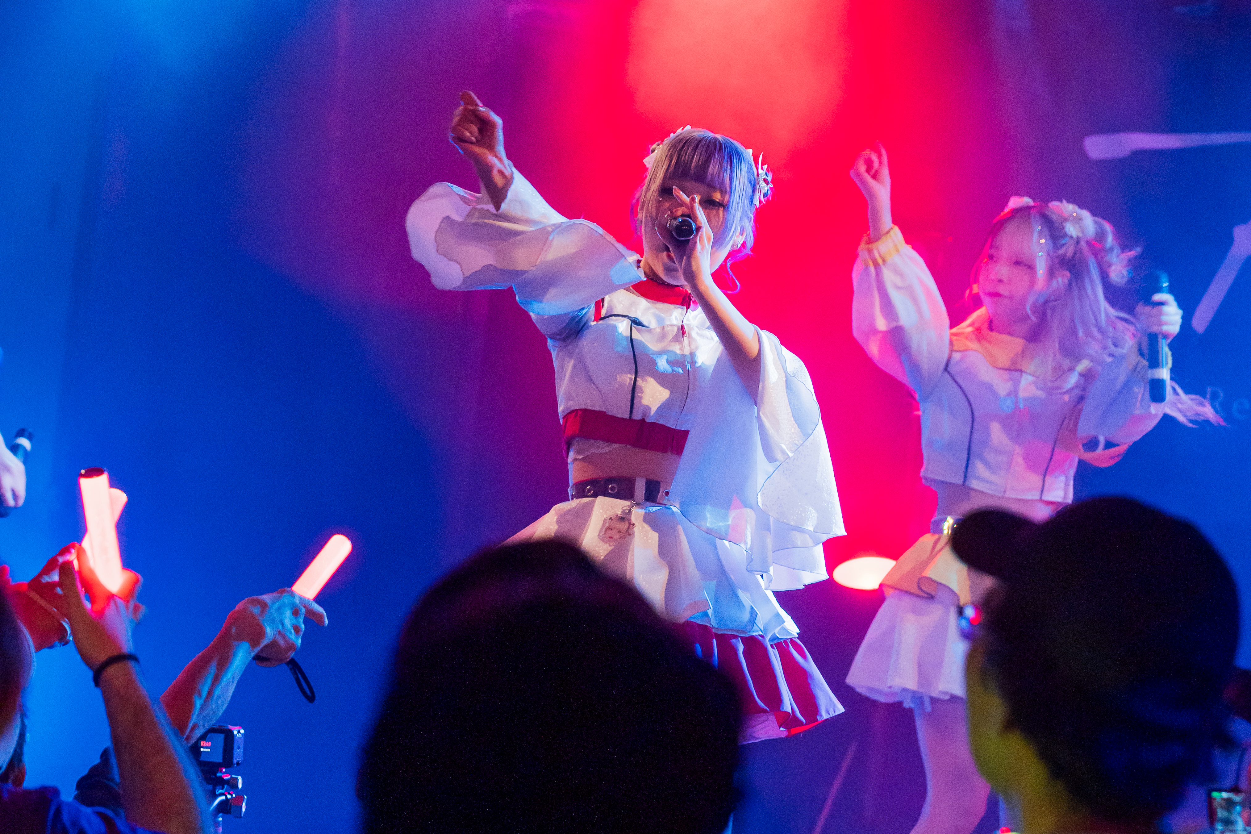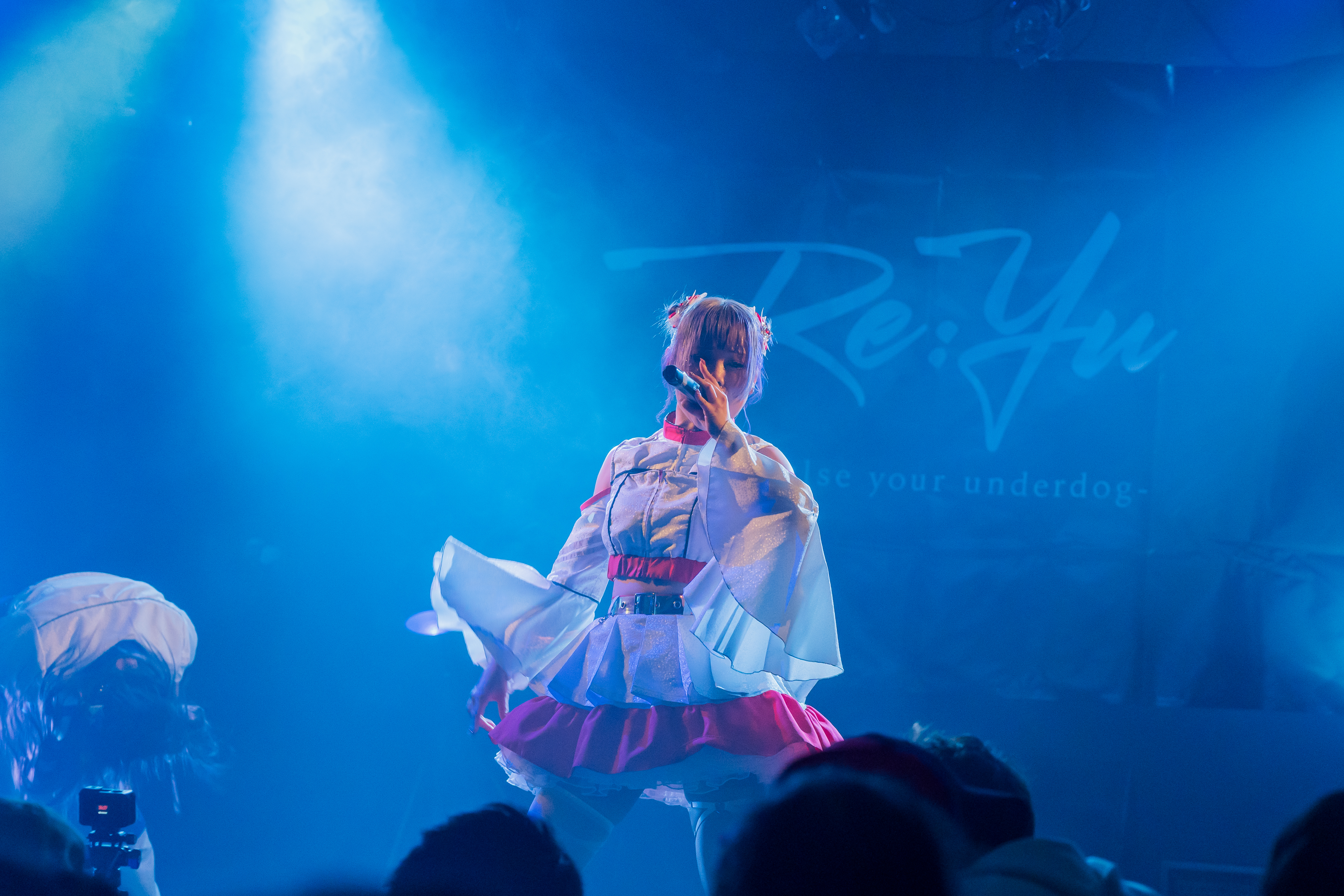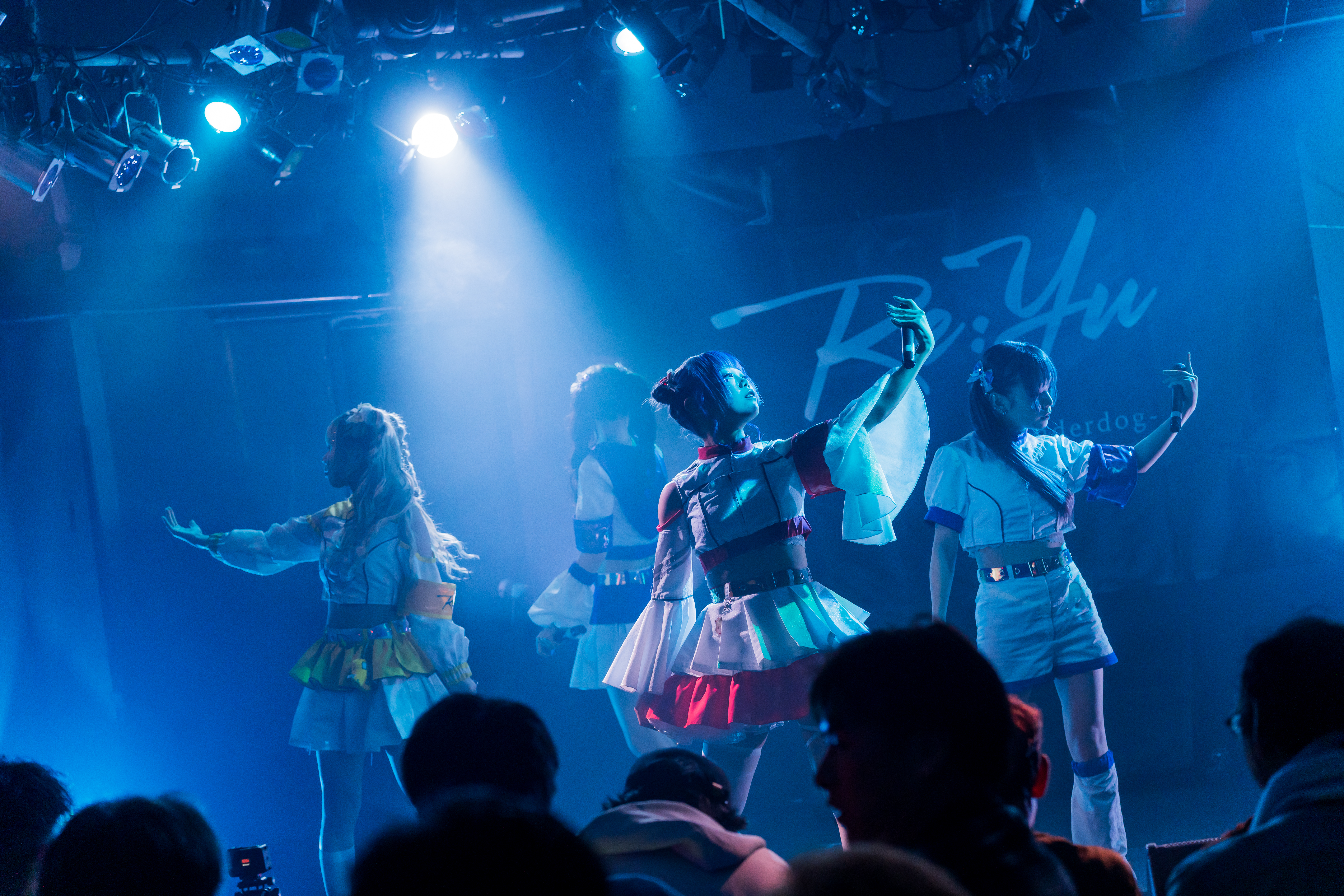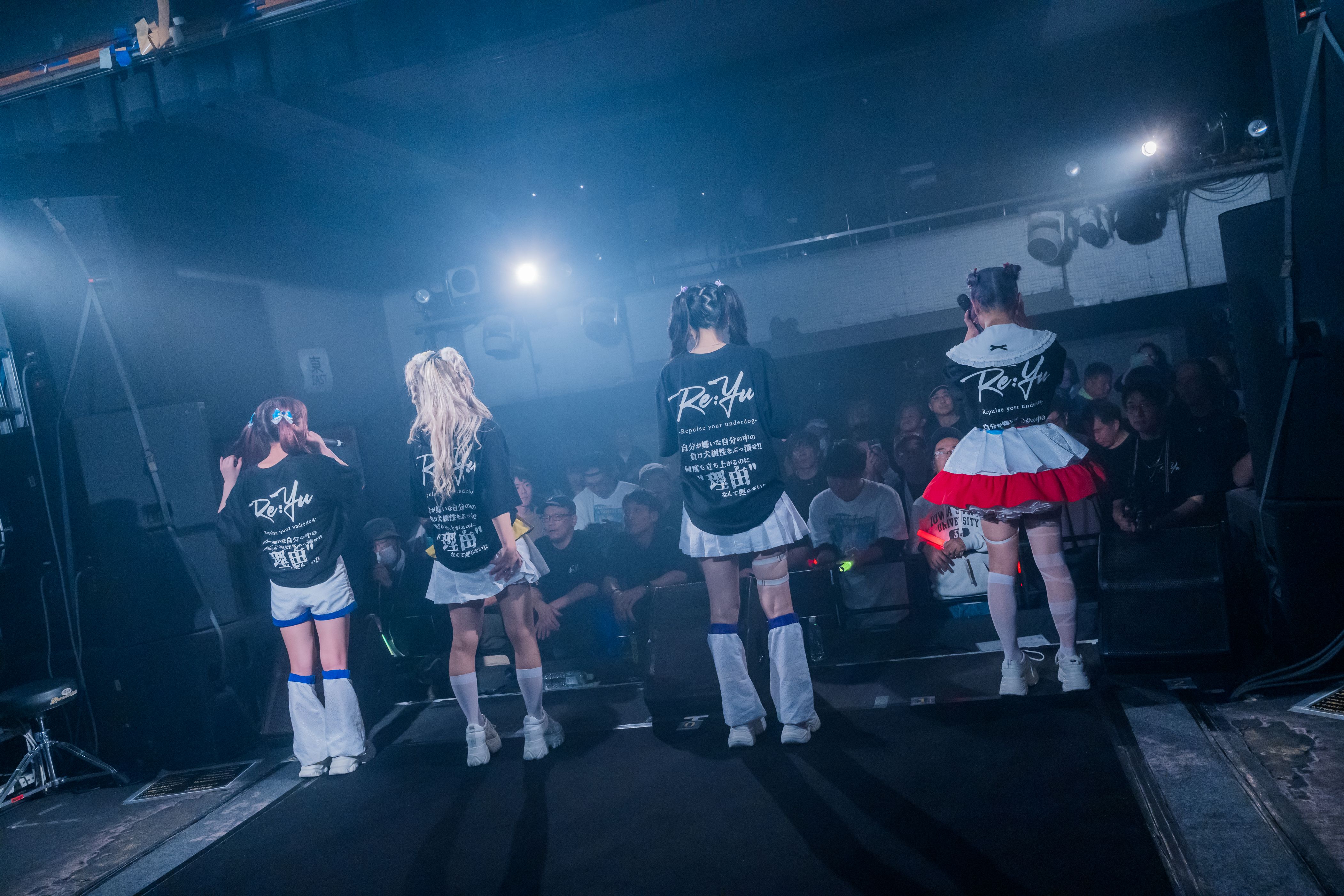 最後にRe:Yuは、4人編成で『残機EXTEND!』を届けてきた。アンコールで歌った2曲とも、自分たちの意志や生きざまを強く示し、荒ぶる言葉の矢として放つ楽曲だ。強い意志を胸にした4人の思いが心へ刺さるたび、彼女たちが身体を折り畳みながらステージの最前で観客たちを煽るたびに、興奮を抑えられなくなる。だから、4人と一緒にツーステを踏みながら騒ぎ狂い続けていた。互いに心を裸にし、剥き出しの気持ちと気持ちをぶつけあい、共に高めあう。それこそが彼女たちの、そして、Re:Yuを応援し続ける人たちの生きる理由なのだから。