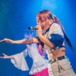 手に団扇を持って登場したのが、紫乃宮ゆあ・夕凪るなチーム。2人は、輝きを放つポップな疾走チューン『Wellbeing』を愛らしく歌唱。「好きに理由はいらない」の言葉ではないが、楽しむのに理屈も屁理屈もいらない。ときに、互いの身を寄り添え、キュートな素振りも見せながら歌う2人。ポップでチャーミングなダンスビートチューンを、彼女たちは愛らしい姿で歌っていた。「You’re the one!」と甘い歌声が届くたび、胸がキュンと鳴れば、2人のことをもっともっと好きになっていく。
