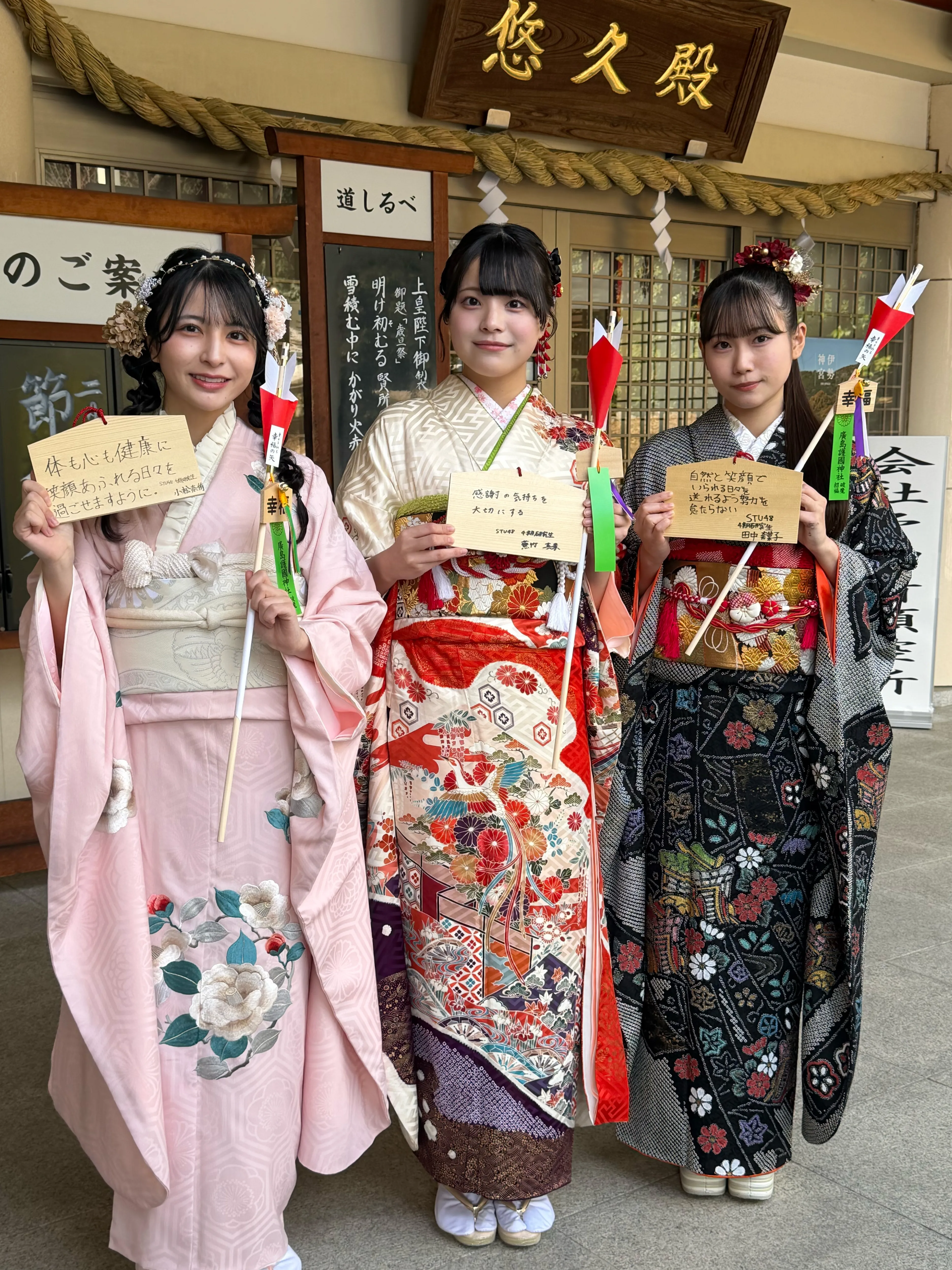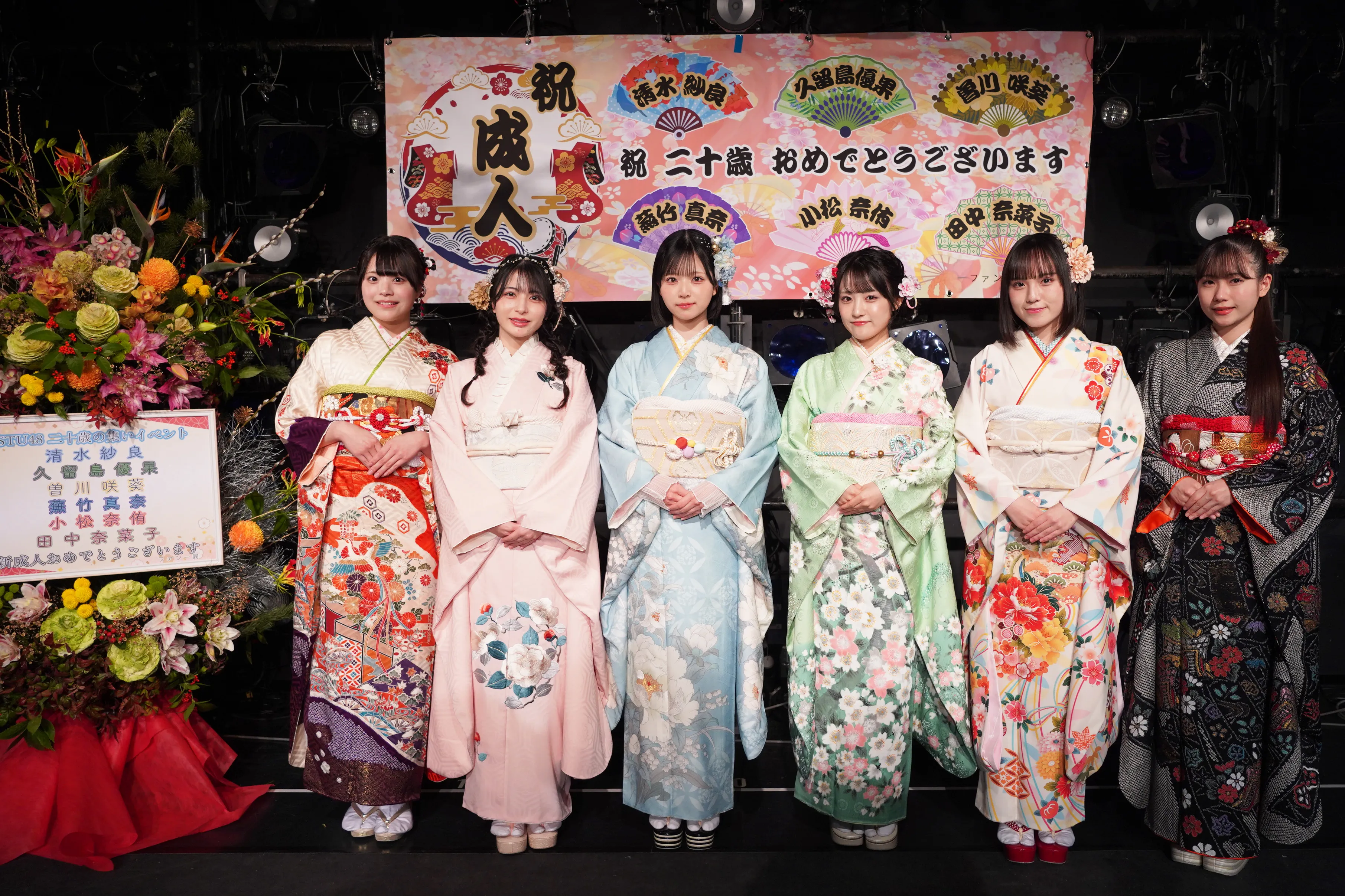 STU48は1月12日の成人の日、昨年に続き広島県・広島護国神社にて成人奉告祭を執り行った。今年20歳を迎えたのは、2期生の清水紗良さん、2.5期生の久留島優果さん、3期生の曽川咲葵さん、そして4期研究生の蕪竹真奈さん、小松奈侑さん、田中奈菜子さんの計6人である。