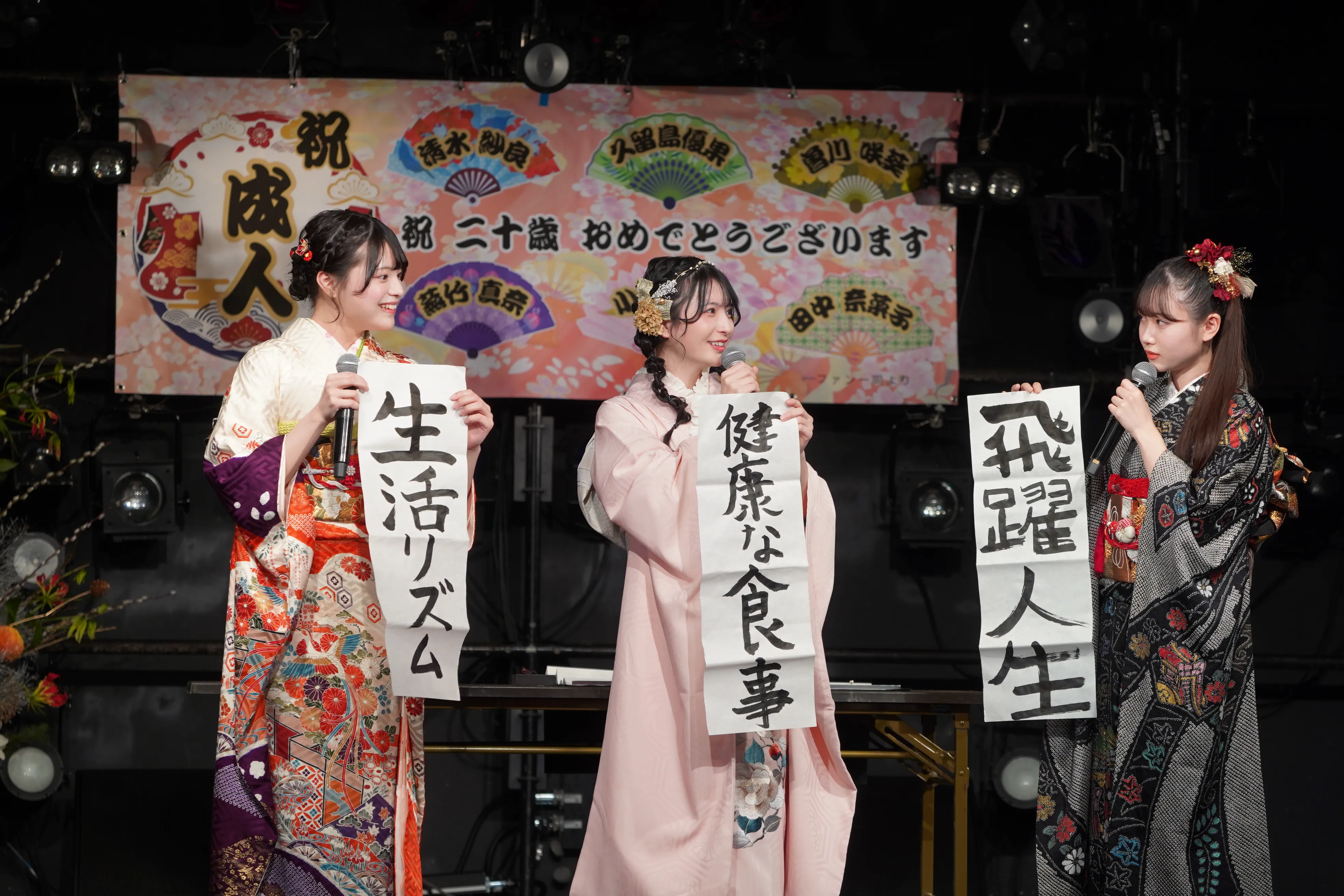書き初め企画では、6人が今年の目標や将来への思いを筆に託し、達成への決意を新たにした。ファンとの交流を楽しみながら、20歳としての第一歩を踏み出す貴重な時間となった。
