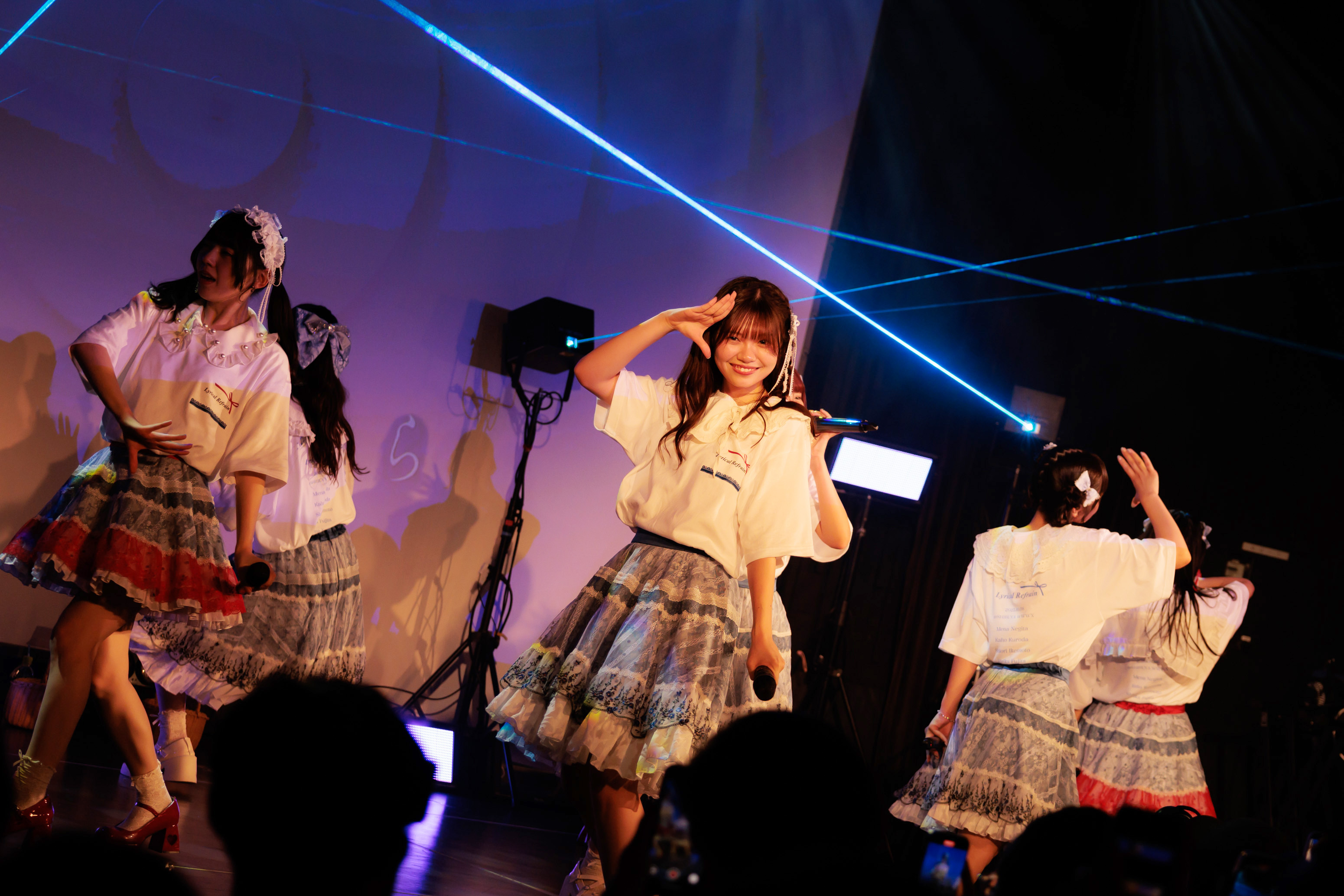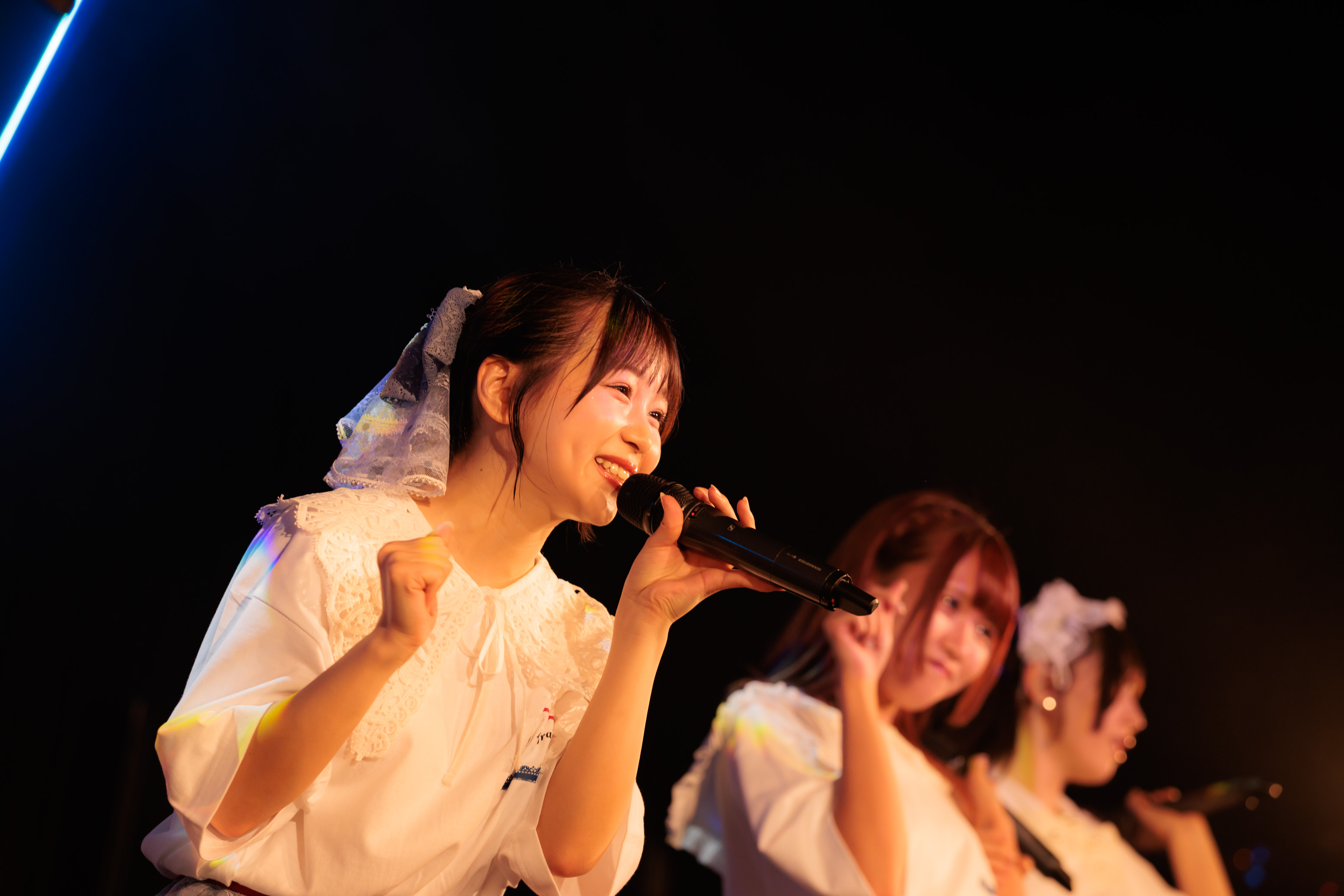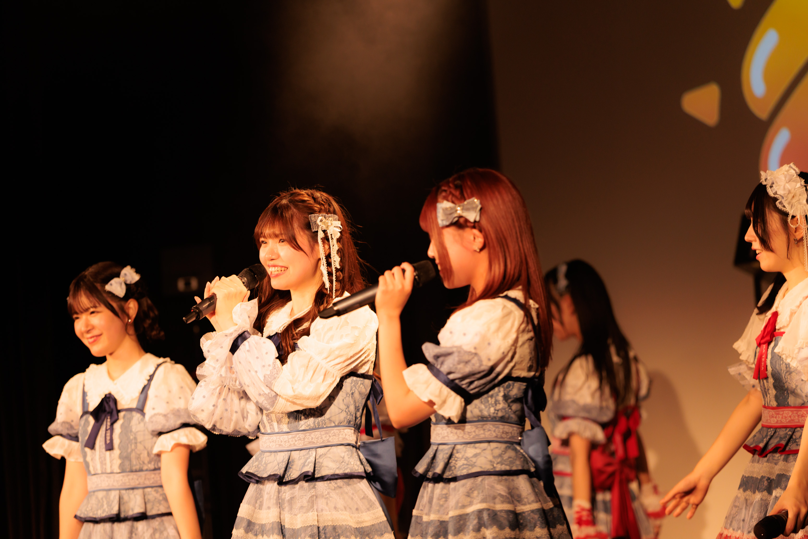 自己紹介を終えると、すぐさま夏のバラードナンバー『夏結び』をしっとりと歌い上げていく。歌唱力が問われる楽曲だが、音程がずれず歌唱していて、練習の成果が発揮されていた。続けて定番曲の『StarDust』、『キラメキストーリー』、『Happy Smile』をパフォーマンスしていく。なお『Happy Smile』は、新体制では初めて披露したということで、メンバーから「披露出来て嬉しい」というコメントを残していた。